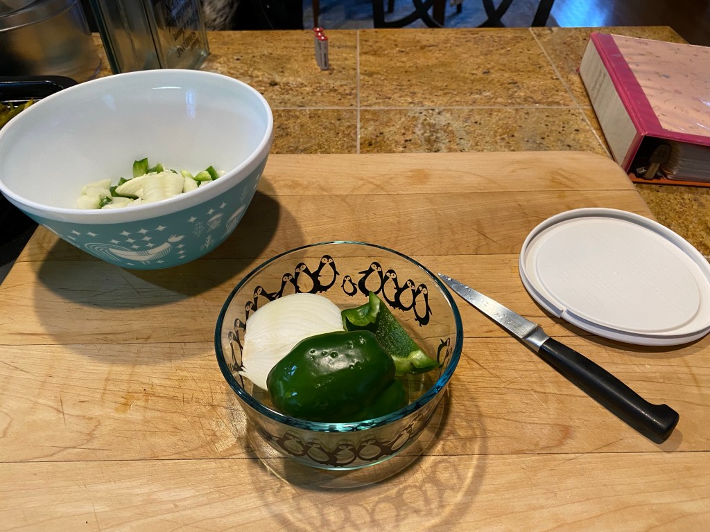 Today, I focused on starting dinner, tidying the small pantry, tidying the spice cabinet, restocking the freezer with homemade waffles for my youngest son, repurposing items, and cooking veggies that are a little old.