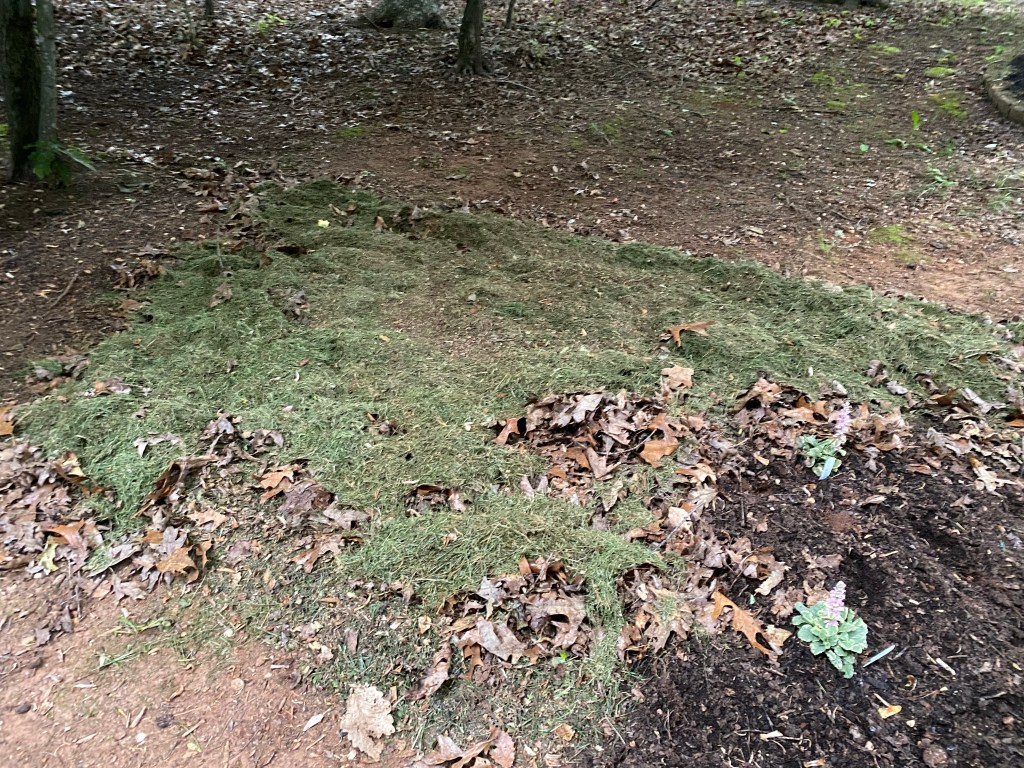 With almost no grass in this area, I don’t need to worry about the bottom layer being cardboard or newspaper. I will use cardboard when I have it to prevent trees from growing in the bed.
