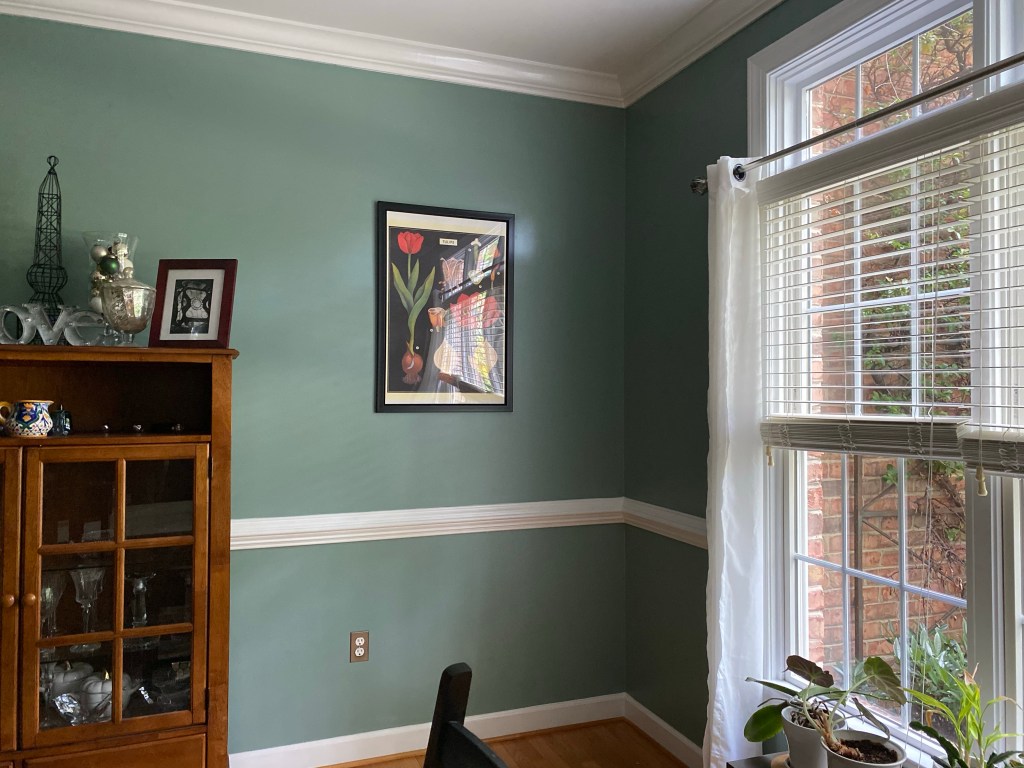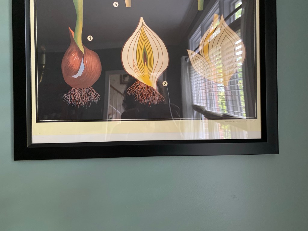 I found this tulip poster last fall at a flea market for $12. The frame is from Michael’s craft store. Silly me bought a frame slightly longer than I needed.