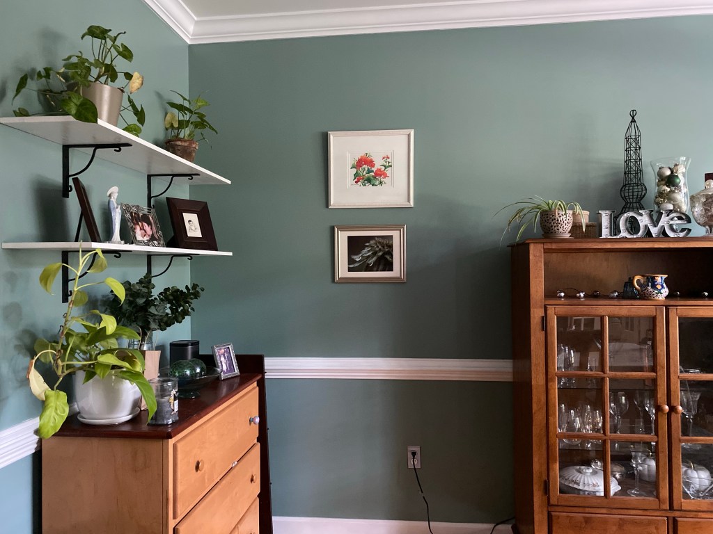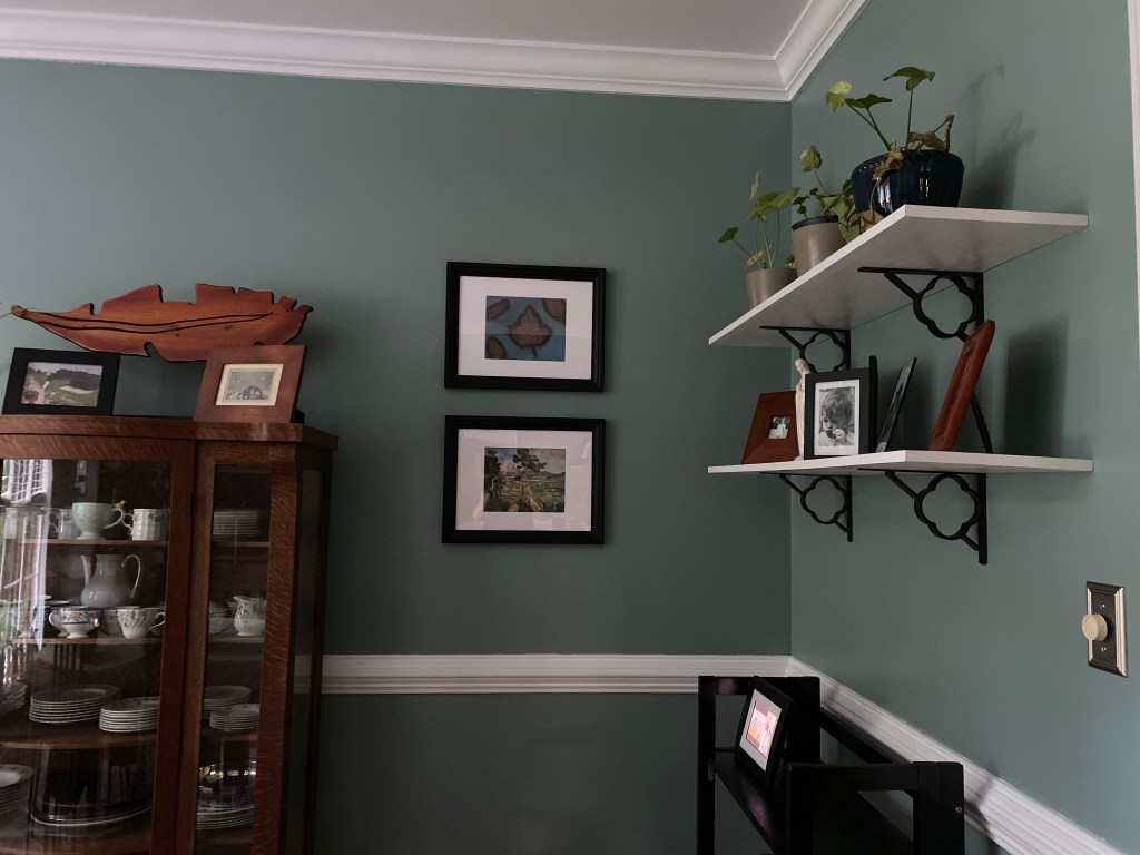 Recently we began hanging pictures in our breakfast room. My plan was to stick with a plant theme using my photography and prints I’ve picked up while thrifting.
