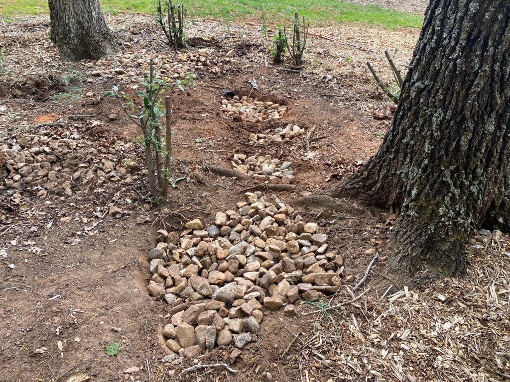 I hope this design buys us some time. If the rock pools fill up with dirt in a few years, we can hire someone to do a better job of digging a trench.