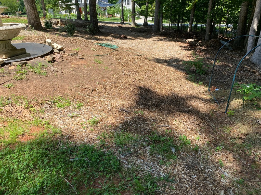 See the hose lying across the mulch? It’s connected to an underground watering system. I’m so happy someone had the foresight to put the system in! The system covers about 90% of the yard which will make our future project of installing soaker hoses much easier.