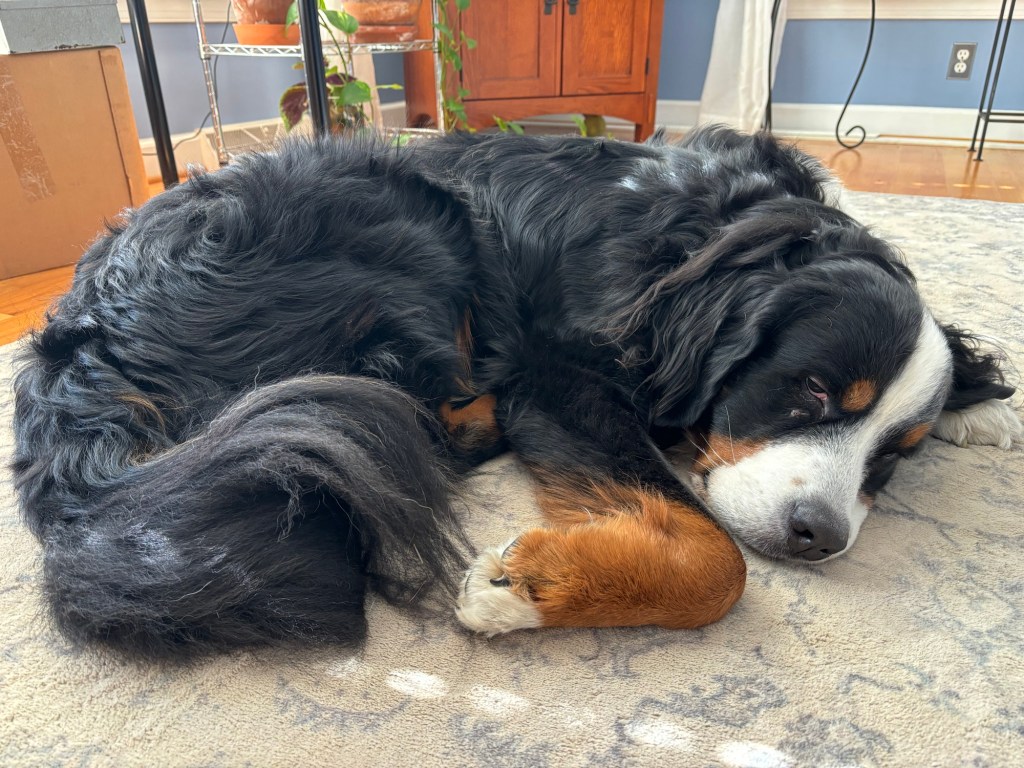 - Groom our Bernese Mountain Dog – yes, me, I groomed our BMD instead of taking him to Petsmart. Granted I’m not done yet. He has mats behind his ears because of our yellow lab. Winston loves to grab Tobey’s fur while they’re wrestling. It’s a slick move. However, it’s a slobbery move that creates mats. Blah. So, I grabbed my handy dandy comb and worked through those mats and then brushed Tobey. I also used a clipper on the bottom of his paws. BMD’s get fluffy on the underside of their paws which is good in snow, but not so good on slippery wood floors.