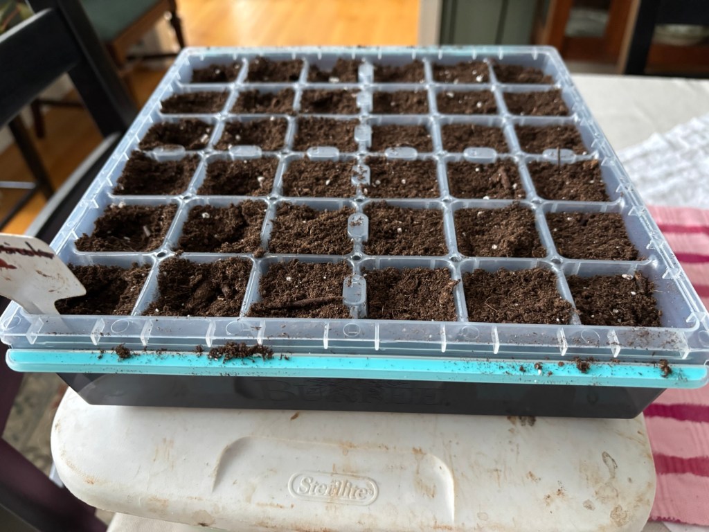 Unfortunately, we had an unwanted guest in the basement; a field mouse munched its way through some of the seeds I had started in January. I moved the greenhouses upstairs to our breakfast room, and my husband will be setting traps in the basement.